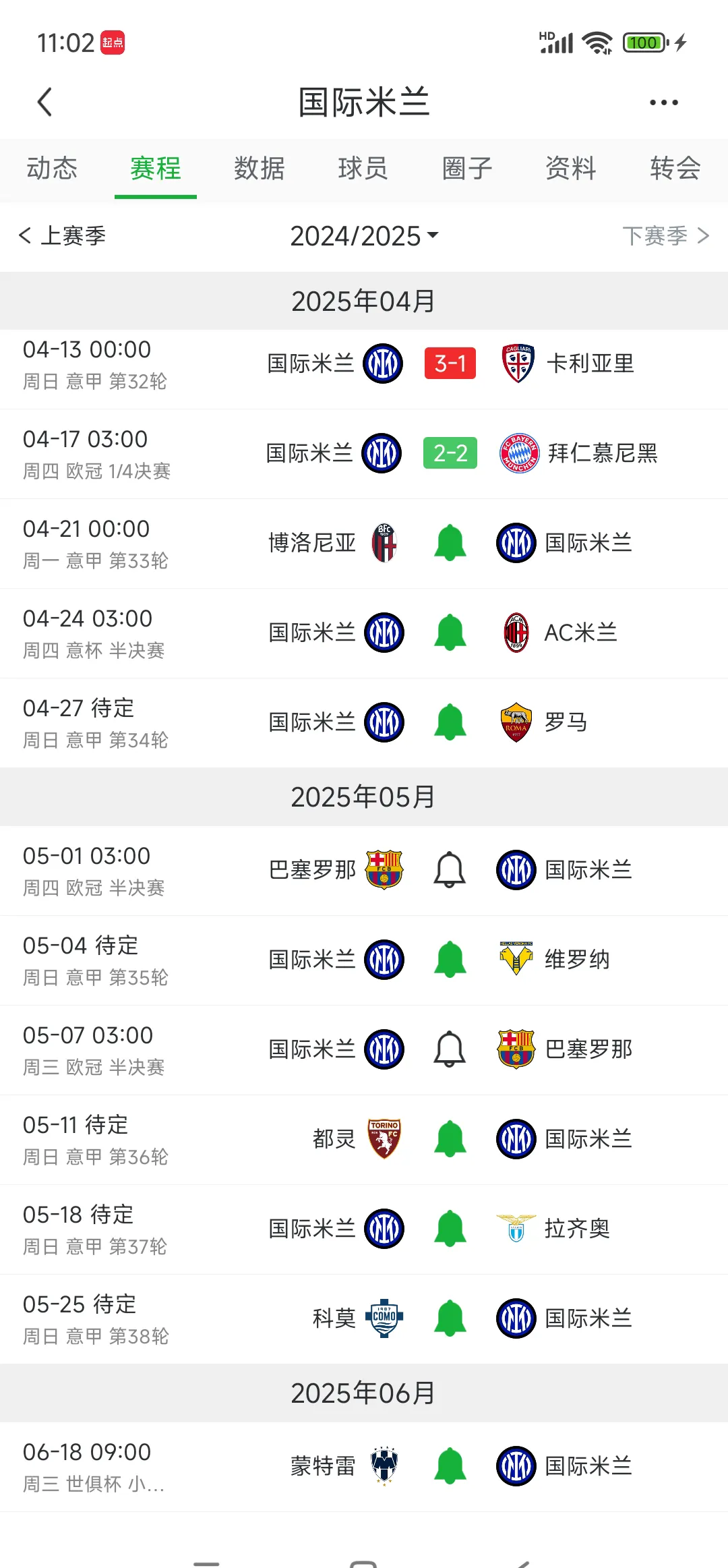 关于意甲最新比分及积分榜排名如下 意甲联赛进入第四轮,焦点战国际米兰对阵AC米兰的比赛成为本轮最引人注目的对决国际米兰凭借出色的表现以51战胜AC米兰,取得了四连胜,暂时霸占榜首位置尤文图斯则以31击败拉齐奥,保持不败,排名第二米兰市区的两支球队AC米兰和国际米兰分别位列第三和第一位比赛详情国际米兰在上半场;国际米兰在最新一轮意甲比赛中,以32的比分战胜亚特兰大队,成功锁定了本赛季的欧冠资格这场胜利让蓝黑军团在积分榜上跃升至第二名,提前一轮确保了欧冠资格的席位国际米兰的这一胜利不仅满足了球迷的期待,也为俱乐部的财政困境找到了解决方案国际米兰在欧冠赛事中表现出色,已经杀入决赛,获得了;意大利足球甲级联赛历史上,只有国际米兰这一支从未降级的队伍,以其卓越的战绩在欧洲乃至全球享有盛誉成立仅仅两年后,国际米兰就在1909年赢得了队史首个甲级联赛冠军十年后,1920年,他们再次登顶1929~1930赛季,阿帕德·维茨教练的调教和20岁的梅阿查的41粒入球,助球队夺得了冠军,此后梅阿查成为;曼奇尼在最近的采访中说国米现在成型了,言下之意似乎在说不需要补强,其实,任何时候都不能说“不需要补强”,在看上去状态最好人员最充足的时候更应该未雨绸缪,何况现在远不到那时候要补,不过不能随便补,得考虑到满足对队内良性竞争的条件按小国际现在的财力,也不太可能买什么阿扎尔J罗,所以1边后卫要补,曼奇尼的打。